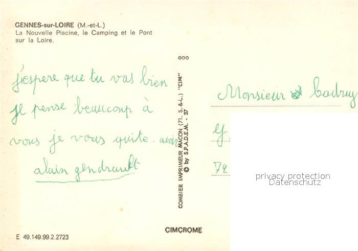 13663315 Gennes Maine-et-Loire La nouvelle Piscine le Camping et le Pont sur la Loire Vue aerienne postalisch nicht gelaufen Erhaltung siehe scans [WerneD78] Wern Katcode 11170049349149