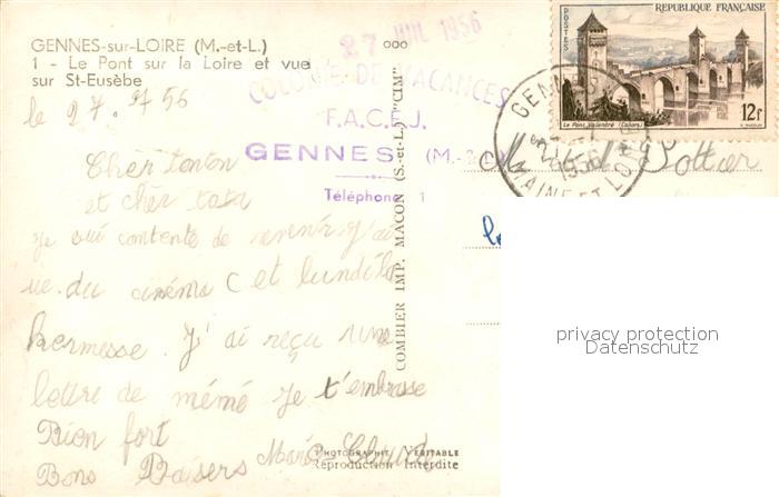 13679635 Gennes Maine-et-Loire Le Pont sur la Loire et vue sur St Eusebe postalisch gelaufen Erhaltung siehe scans [WerneD78] carte postale Wern Katcode 11170049349149