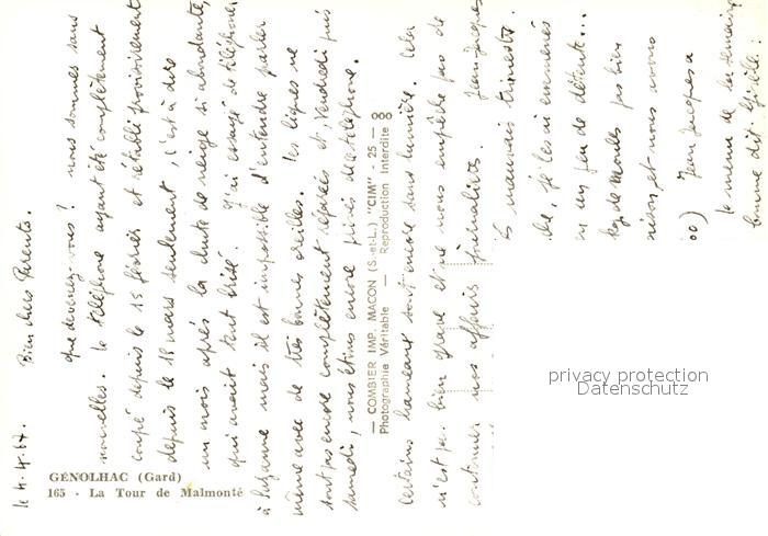 13593128 Genolhac Tour de Malmonté postalisch nicht gelaufen Erhaltung siehe scans [FriedD77] Frie Katcode 11170030130130