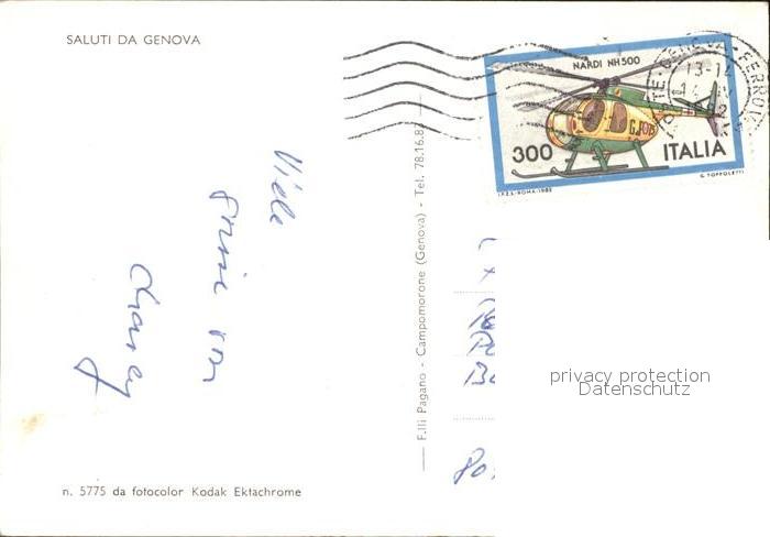 old postcard Genova Genua Liguria Blumenpark Springbrunnen Nacht Hafen postalisch gelaufen Erhaltung siehe scans
