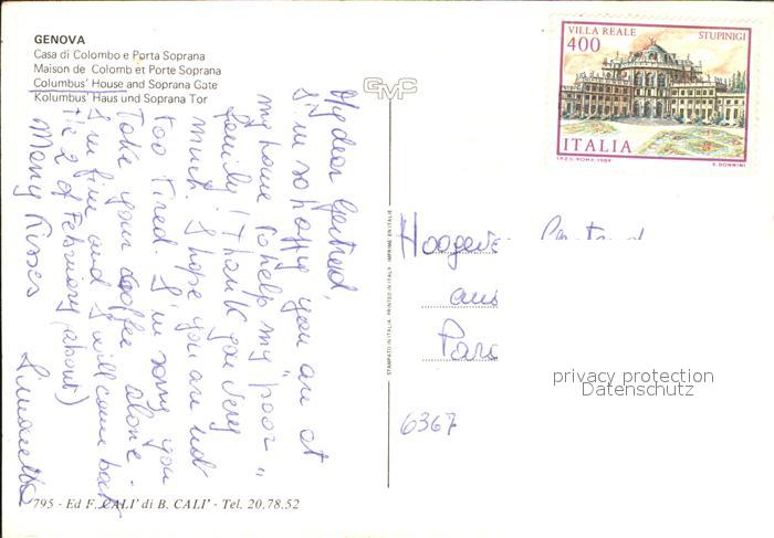 old postcard Genova Genua Liguria Columbus Haus postalisch gelaufen Erhaltung siehe scans [KathaD79]