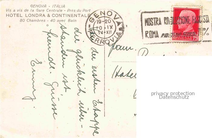 74034774 old postcard GENOVA Genua Liguria IT Hotel Londra et Continentale postalisch gelaufen Erhaltung siehe scans [WerneD78] KatCode: 11240