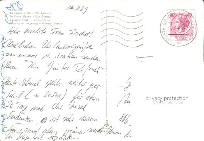 old postcard Genova Genua Liguria La Sopraelevata Via Gramsci postalisch gelaufen Erhaltung siehe scans