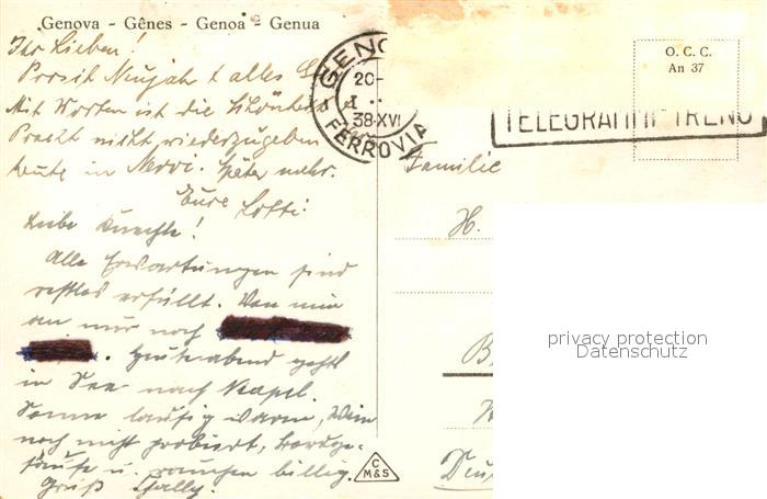 old postcard Genova Genua Liguria Panorama Hafen postalisch gelaufen Erhaltung siehe scans [FriedD77]