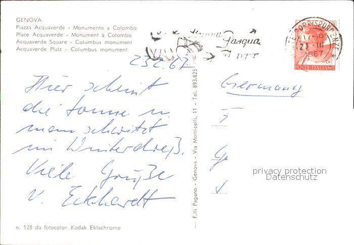 old postcard Genova Genua Liguria Piazza Acqaverde Monumento a Colombo postalisch gelaufen Erhaltung siehe scans