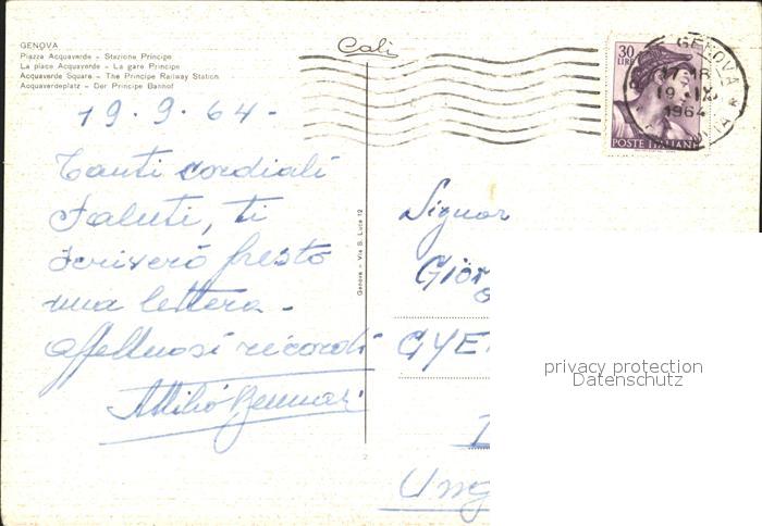 old postcard Genova Genua Liguria Piazza Acquaverde Stazione Principo postalisch gelaufen Erhaltung siehe scans