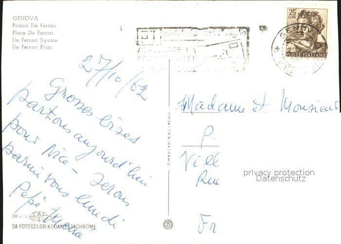 old postcard Genova Genua Liguria Piazza da Ferrari postalisch gelaufen Erhaltung siehe scans