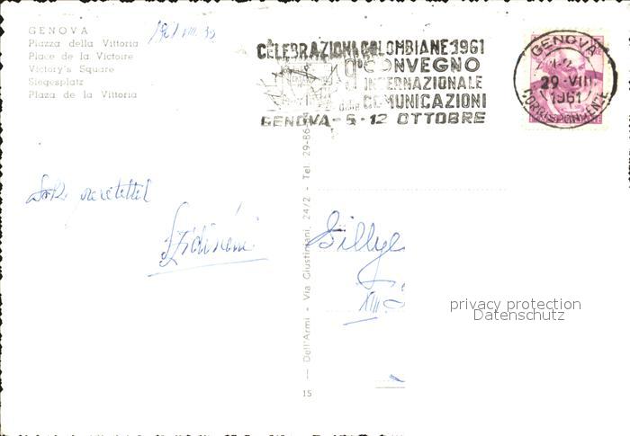 old postcard Genova Genua Liguria Plazza de la Vittoria postalisch gelaufen Erhaltung siehe scans