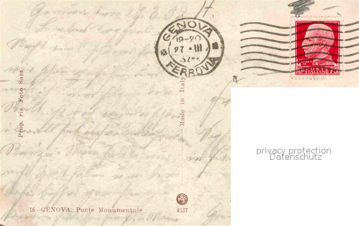 old postcard Genova Genua Liguria Ponte Monumentale postalisch gelaufen Erhaltung siehe scans [FriedD77]