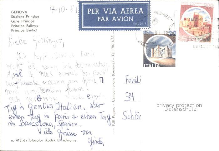 old postcard Genova Genua Liguria Stazione Principe postalisch gelaufen