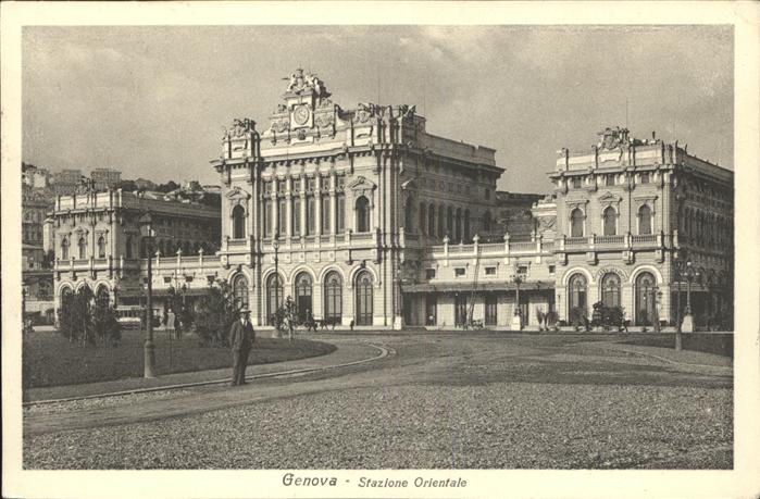 old postcard Genova Genua Liguria Stazone Orientale postalisch gelaufen Erhaltung siehe scans