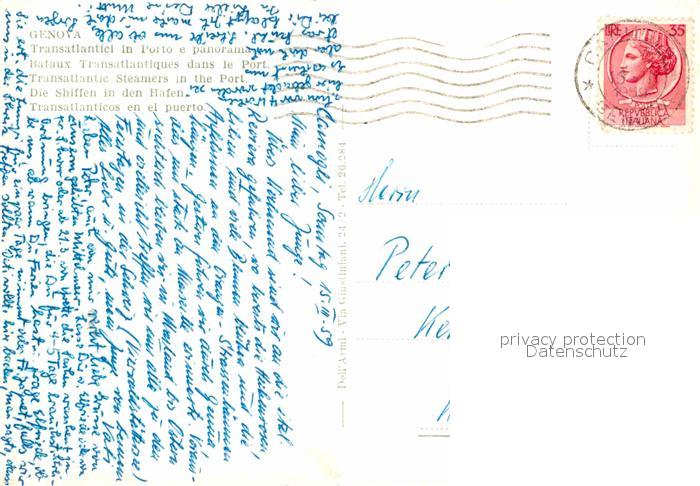 old postcard Genova Genua Liguria Transatlantici in Porto e panorama postalisch gelaufen Erhaltung siehe scans [WerneD78]