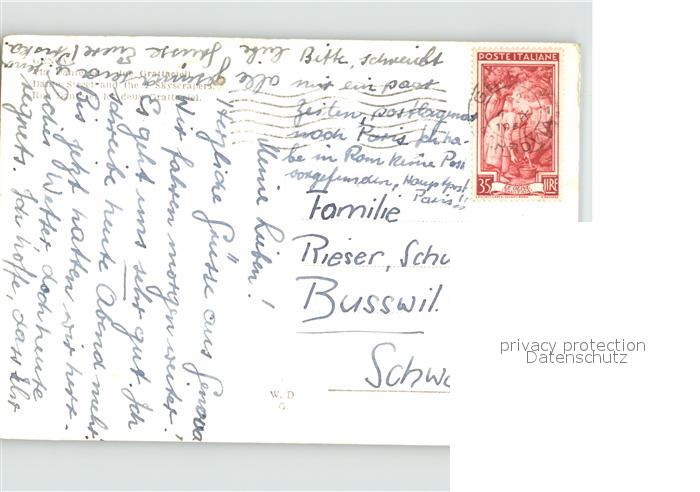old postcard Genova Genua Liguria Via Dante etd i due Grattacieli postalisch gelaufen Erhaltung siehe scans