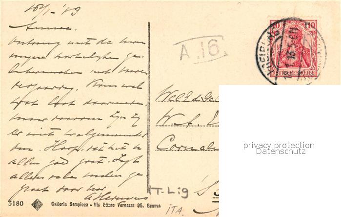 old postcard Genova Genua Liguria Villa Figari gia Milyus postalisch gelaufen Erhaltung siehe scans [KathaD81]