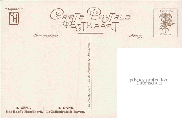 74100117 GENT Gand Belgie La Cathedrale St Bavon Aquarell postalisch nicht gelaufen Erhaltung siehe scans [WerneD78] KatCode: 11070044002661