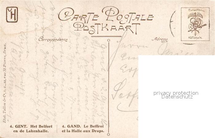73364186 carte postale Gent Gand Flandre Belfort Lakenhalle Kuenstlerkarte postalisch gelaufen Erhaltung siehe scans [PaolaD17] KatCode: 11070044002661