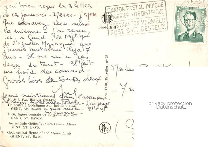 73083757 carte postale Gent Gand Flandre God. central figure of the Mystic Lamb postalisch gelaufen Erhaltung siehe scans [NatalD47] KatCode: 11070044002661