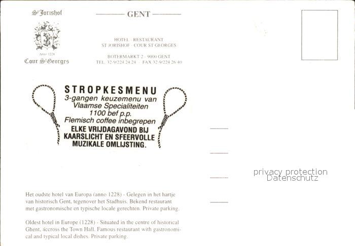 71859620 Gent Gand Flandre Hotel Restaurant St Jorishof Cour St Georges postalisch nicht gelaufen Erhaltung siehe scans KatCode: 11070044002661