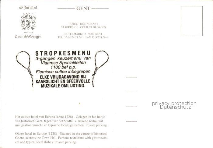 71934520 Gent Gand Flandre Hotel Restaurant St Jorishof postalisch nicht gelaufen Erhaltung siehe scans KatCode: 11070044002661