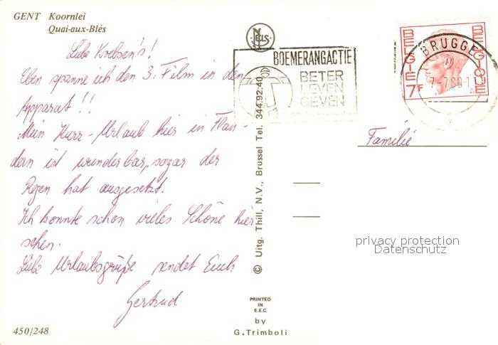 73267860 carte postale Gent Gand Flandre Koornlei Quai-aux-Bles postalisch gelaufen Erhaltung siehe scans [PaolaD17] KatCode: 11070044002661