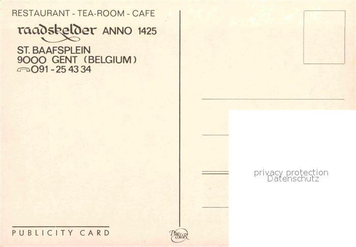72662739 Gent Gand Flandre Restaurant Raadskelder postalisch nicht gelaufen Erhaltung siehe scans [AndreD76] KatCode: 11070044002661