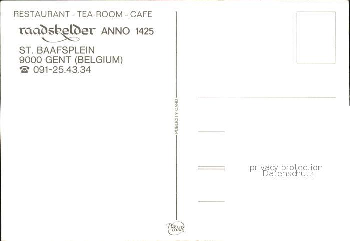 71907200 Gent Gand Flandre Restaurant-Tea-Room-Cafe Raadskelder postalisch nicht gelaufen Erhaltung siehe scans KatCode: 11070044002661