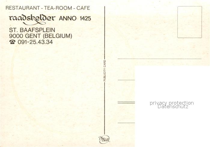 72953415 Gent Gand Flandre Restaurant Tea Room Cafe raadskelder postalisch nicht gelaufen Erhaltung siehe scans [FriedD77] KatCode: 11070044002661