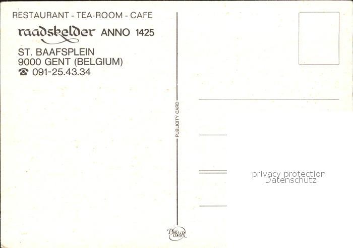72428863 Gent Gand Flandre Restaurant Tea Room Cafe Raadskelder postalisch nicht gelaufen Erhaltung siehe scans KatCode: 11070044002661