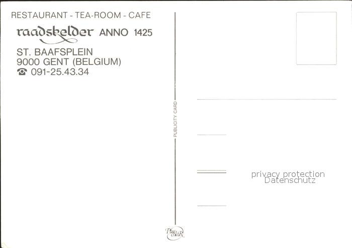 72270857 Gent Gand Flandre Restaurant Tea Room Cafe raadskelder anno 1425 postalisch nicht gelaufen Erhaltung siehe scans KatCode: 11070044002661