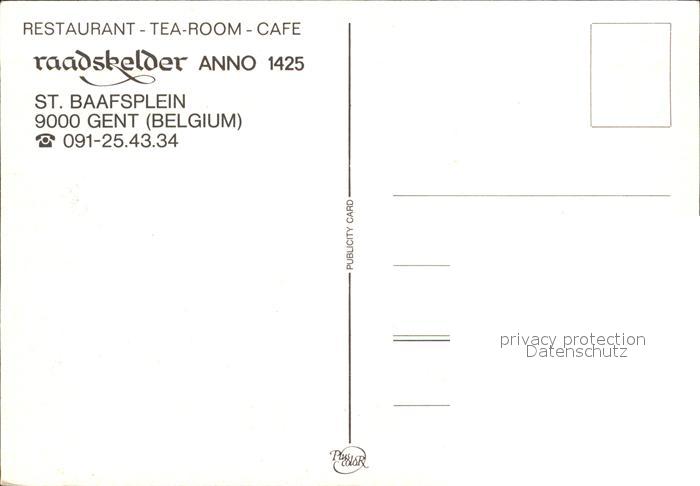 72253910 Gent Gand Flandre Restaurant Tearoom Cafe Raadskelder postalisch nicht gelaufen Erhaltung siehe scans KatCode: 11070044002661