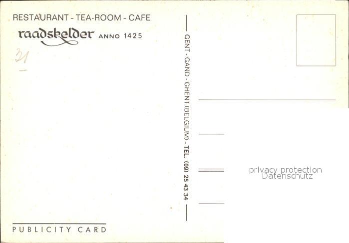 72121890 Gent Gand Flandre Restaurant Tearoom Cafe Raadskelder postalisch nicht gelaufen Erhaltung siehe scans KatCode: 11070044002661