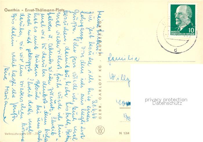 73612792 alte Postkarte Genthin Ernst Thaelmann Platz postalisch gelaufen Erhaltung siehe scans [WerneD78] KatCode: 11110015086040