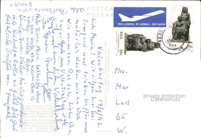 alte Postkarte George Western Cape Sankt Marks Cathedral Yacht Club Buecherei postalisch gelaufen Erhaltung siehe scans