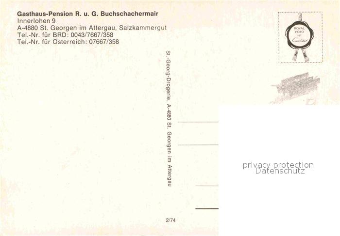 12882493 Georgen Attergau Sankt Gasthaus Pension Buchschachermair postalisch nicht gelaufen Erhaltung siehe scans [KathaD81] KatCode: 11390315041734