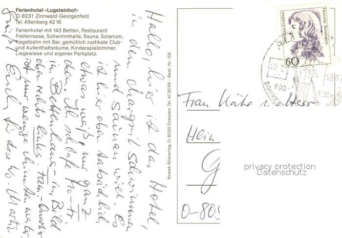 73658718 alte Postkarte Georgenfeld Ferienhotel Lugsteinhof Restaurant Hallenbad postalisch gelaufen Erhaltung siehe scans [FriedD77] KatCode: 11110014290010