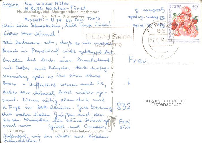 72417011 alte Postkarte Georgenfeld Naturschutzgebiet Hochmoor postalisch gelaufen Erhaltung siehe scans KatCode: 11110014290010