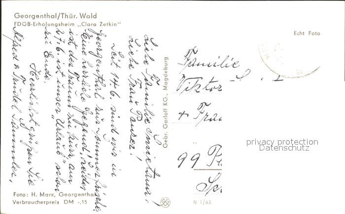 72281809 alte Postkarte Georgenthal FDGB- Erholungsheim Clara Zetkin postalisch gelaufen Erhaltung siehe scans KatCode: 11110016067025