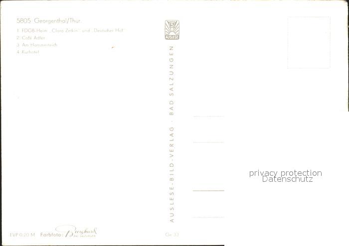 72060156 Georgenthal FDGB HeimCafe Adler,Kurhotel postalisch nicht gelaufen Erhaltung siehe scans KatCode: 11110016067025