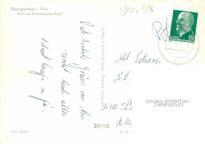 72704888 alte Postkarte Georgenthal Gotha Blick vom Schwabenhaeuser Kopf postalisch gelaufen Erhaltung siehe scans [AndreD76] KatCode: 11110016067025
