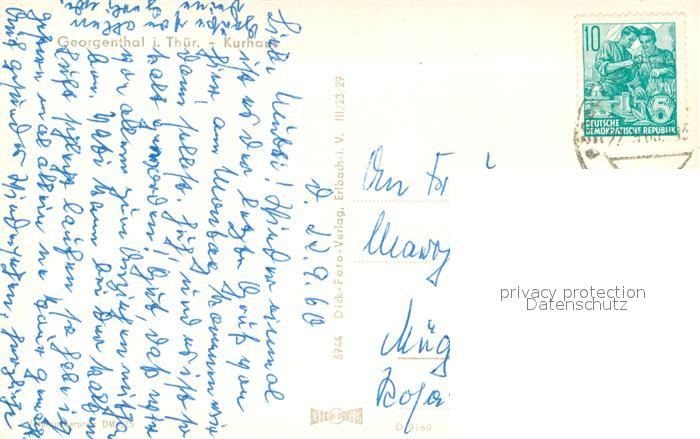 73744953 alte Postkarte Georgenthal Gotha Kurhaus postalisch gelaufen Erhaltung siehe scans [WerneD78] KatCode: 11110016067025