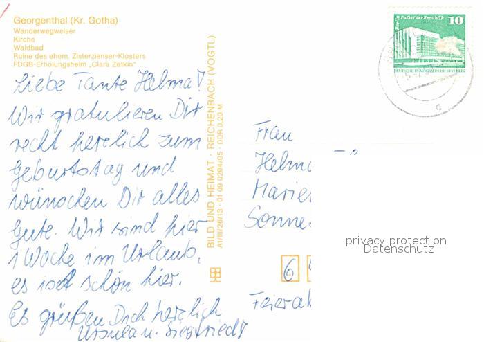 72774754 alte Postkarte Georgenthal Gotha Wanderwegweiser Kirche Waldbad Ruine des Zisterzienser Klosters postalisch gelaufen Erhaltung siehe scans [AndreD76] KatCode: 11110016067025
