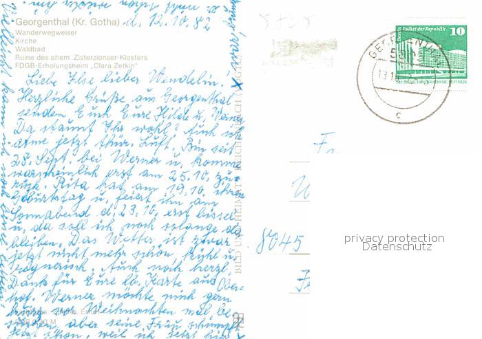 72751834 alte Postkarte Georgenthal Gotha Wanderwegweiser Kirche Waldhaus Ruine Zisterzienserkloster postalisch gelaufen Erhaltung siehe scans [KathaD81] KatCode: 11110016067025