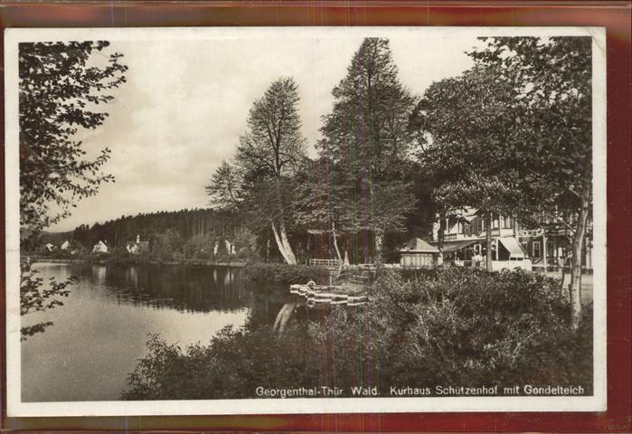 41428653 alte Postkarte Georgenthal Kurhaus Schuetzenhof Gondelteich postalisch gelaufen Erhaltung siehe scans KatCode: 11110016067025