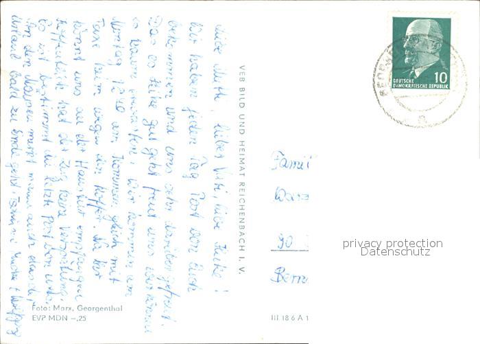 72335192 alte Postkarte Georgenthal Panorama Blick vom Ziegelberg Waldsaeumweg Kurhaus Hammerteich Wappen postalisch gelaufen Erhaltung siehe scans KatCode: 11110016067025