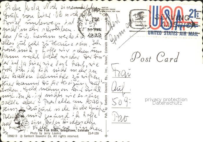 72179150 old postcard Georgetown Colorado The Fish Block postalisch gelaufen Erhaltung siehe scans KatCode: 14140060000000