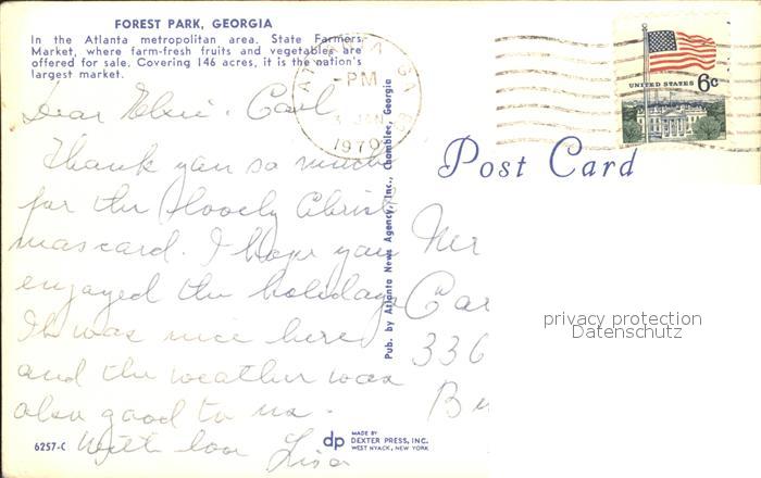 71953362 old postcard Georgia US-State Forest Park postalisch gelaufen Erhaltung siehe scans KatCode: 14140120000000