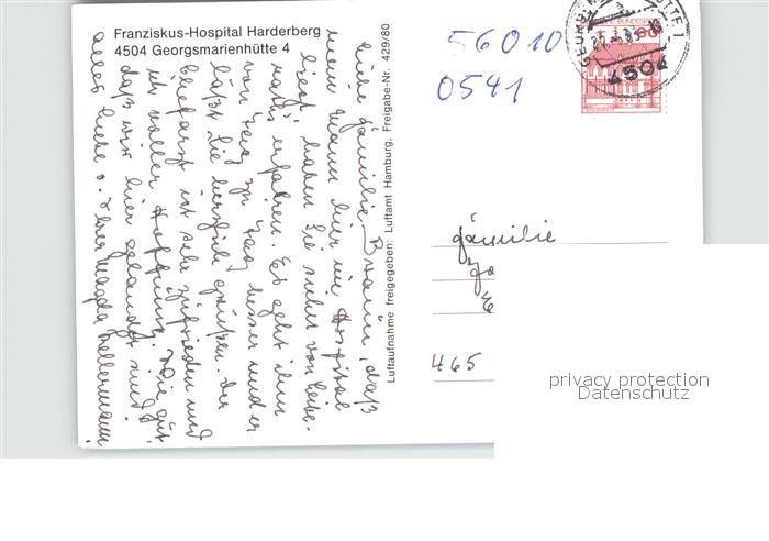 72612661 alte Postkarte Georgsmarienhuette Franziskus-Hospital Harderberg Fliegeraufnahme postalisch gelaufen Erhaltung siehe scans [AndreD76] KatCode: 11110003459019
