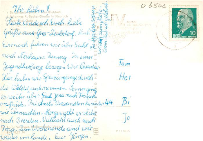 73900612 alte Postkarte Gera Bergarbeiterpoliklinik in Bieblach Johannes R Becher Strasse Interhotel Gera Springbrunnen an der Ernst Thaelmann Strasse Kaufhalle Nord postalisch gelaufen Erhaltung siehe scans [WerneD78] KatCode: 11110016052000