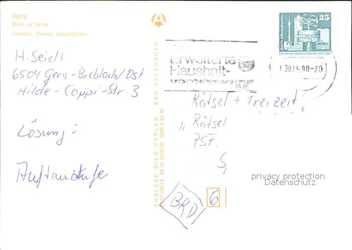 72401262 alte Postkarte Gera Blick zur Sorge Fussgaengerzone postalisch gelaufen Erhaltung siehe scans KatCode: 11110016052000
