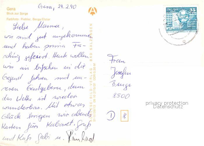 72903797 alte Postkarte Gera Blick zur Sorge postalisch gelaufen Erhaltung siehe scans [FriedD77] KatCode: 11110016052000